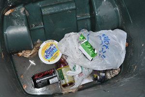 What greeted us was the site (and smell) of common villa trash, including left over food (which had been rotting in the Florida heat for a few days) and coffee grounds, and the general mess that results when our local raccoons enter the container and start tearing bags open looking for their next treat. There was retail packaging, waste from the kitchen and bathrooms, and drink containers spilling everywhere.