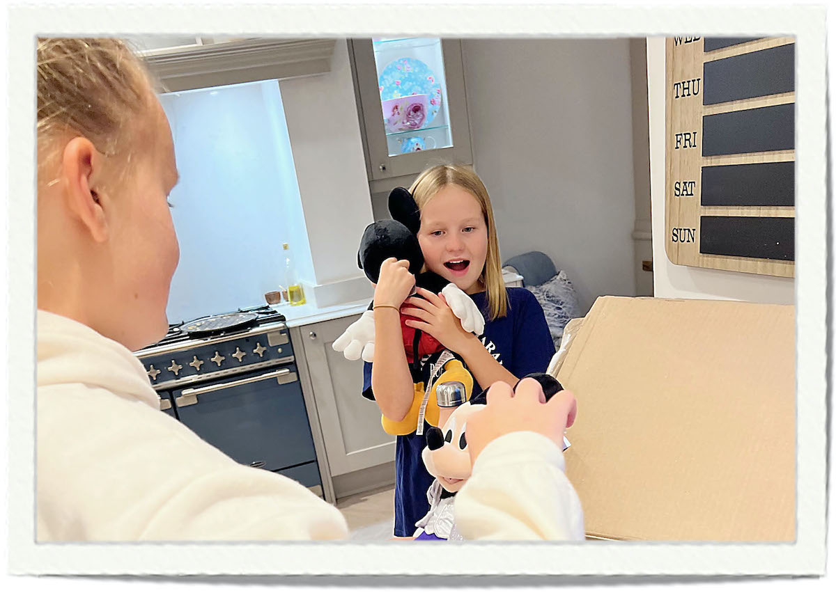 Halle and her sister were very excited to Welcome Mickey to his new home in the UK!